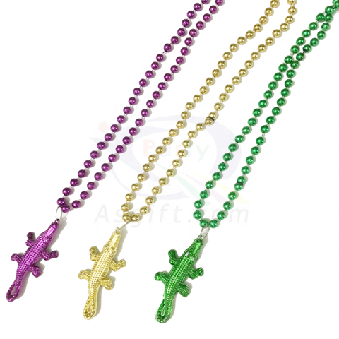 Fabrieksverkoop 7Mm 33 "Metallic Pgg Gooi Mot Ronde Kralen Met Alligator Hanger Voor Mardi Gras Decoraties